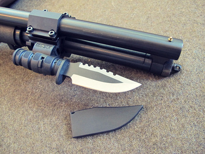 Also this cannot be used to keep distance and stab something (bayonet) due to of course the under mounted knife.